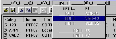 At the bottom of the GDBWin window, there are buttons that emulate the function keys on the Palmtop. The F1(Help) button is greyed out but the F2 (Add) through the F10 (Close) buttons are there and operate in much the same fashion as they do on the Palmtop. You can click the F3 button (or press the F3 function key) to display the Notes field, press F5 to create or modify a Subset definition, etc. You can also press the CTRL+D key to open or close a Data Card view. The only function key that doesn't work is the F8 (Columns) key. However, if you want to widen a column, you can use the Windows technique of dragging the separator bar in the top row of the list view. (See coldrag.gif.)
