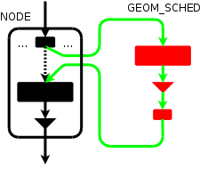 BEFORE ---> [ pp --> old_gp ...] A normal "geom sched create ad0" call would create a new geom node on top of provider ad0/pp, and export a newly created provider ("ad0.sched." accessible through pointer newpp). AFTER create ---> [ newpp --> gp --> cp ] ---> [ pp --> old_gp ... ] On top of newpp, a whole tree will be created automatically, and we can e.g. mount partitions on /dev/ad0.sched.s1d, and those requests will go through the scheduler, whereas any partition mounted on the pre-existing device entries will not go through the scheduler. With the transparent insert mechanism, the original provider "ad0" is hooked to the newly created geom, as follows: AFTER insert ---> [ pp --> gp --> cp ] ---> [ newpp --> old_gp ... ] so anything that was previously using provider pp will now have the requests routed through the scheduler node.