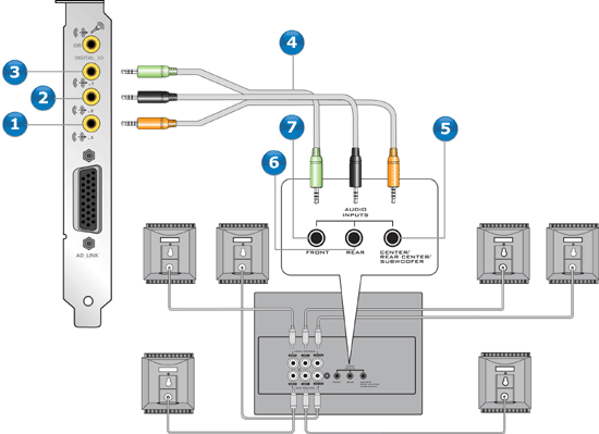 Analoge 2.1-Kanal-Lautsprecher Analoge 4.1-Kanal-Lautsprecher Analoge 5.1-Kanal-Lautsprecher Analoge 6.1-Kanal-Lautsprecher Analoge 7.1-Kanal-Lautsprecher