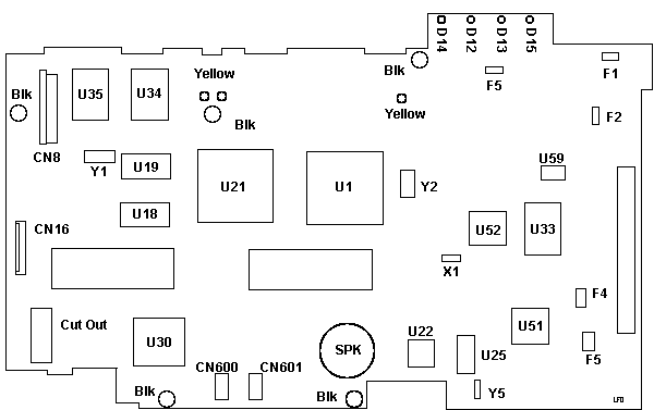 Note- The yellow screws hold the PCMCIA socket frames to the board. Do