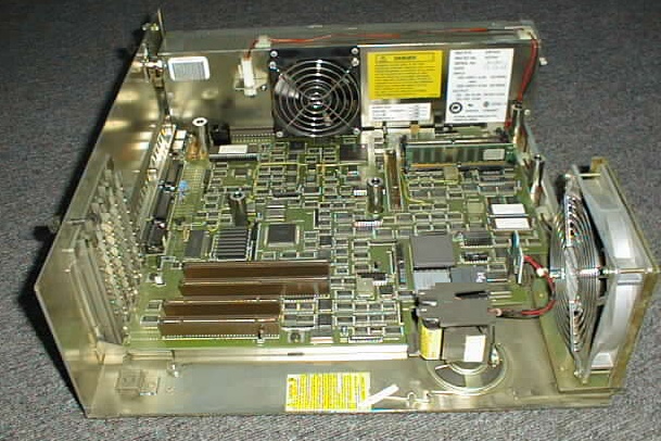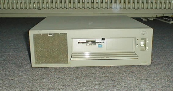 ![]() Click here or click onto the photo for a full size version of this picture. The IBM 7561 belongs to a side-development of IBM's Personal Computer Division that builds PCs for industrial use. In such environments, it is not so important how cool a computer looks, but instead how good it can withstand the environmental conditions. This leads to a solid full-metal case that fits into 19-inch racks, extra cooling fans and a generally more rugged construction. The 7561 is a derivative of the PS/2 model 70: It also has Microchannel slots, a PS/S hard disk interface and the same power supply, but one slot more and a completely different housing with a large (and noisy...) fan at the front. The fan has a dust filter for use in 'dirty' environments. I currently cannot make much use of my 7561 because it's broken somewhere in the area of the on-board VGA; I suspect the Color Palette DAC but it seems to be difficult to fix...