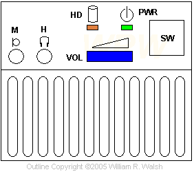 U2 - Philips TDA1015 1-4 watt self contained power amplifier (datasheet) I would assume that the connection to the sound card powers the onboard amplifier. With the sound card cable unplugged the volume control ceases to function and the speaker plays all beeps as a normal front panel would. Have front facing away Unscrew both thumbscrews "Slap" the top of the case forward using your palms along the sides of the case When the top of the case moves forward an inch and a half, pull up.