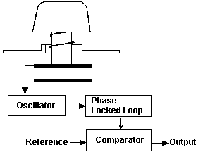 top plate moves, the capacitance between the two plates changes and is