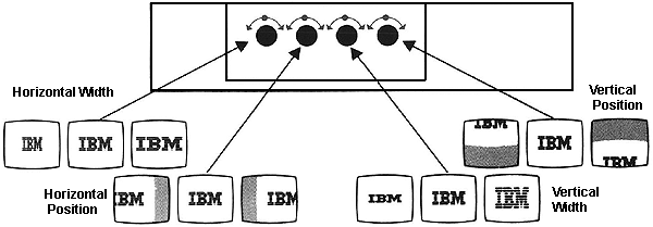 The Image-I Adapter/A always fills the screen with 1600 x 1200 pels. The 1360 x 1024 and 1024 x 768 are just windows within this. The 640 x 480 mode is pel doubled to look like 1280 x 960. The 9504 is specifically designed for the Image Plus market to run at 1600 x 1280 resolution. If used in other resolutions than 1600 x 1280 the reduction in picture size is as follows: 1600 x 1280 = 370 x 296 mm 1360 x 1024 = 315 x 237 mm 1024 x 768 = 237 x 178 mm 640 x 480 = 296 x 222 mm Operating Specifications: