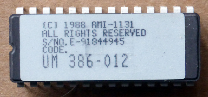 BIOS source | Motherboard: UM386, by Elitegroup Computer Systems (CPU: 80386DX-40 inserted) |