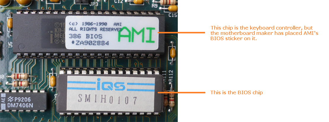 BIOS source | Motherboard: ECS-386/32, by Elitegroup Computer Systems (CPU: 80386DX-20 inserted) |