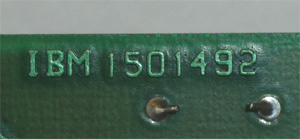 1.  Component side: "IBM 1501492"    (The number 1501492 gets reused on a later variation of the controller.)