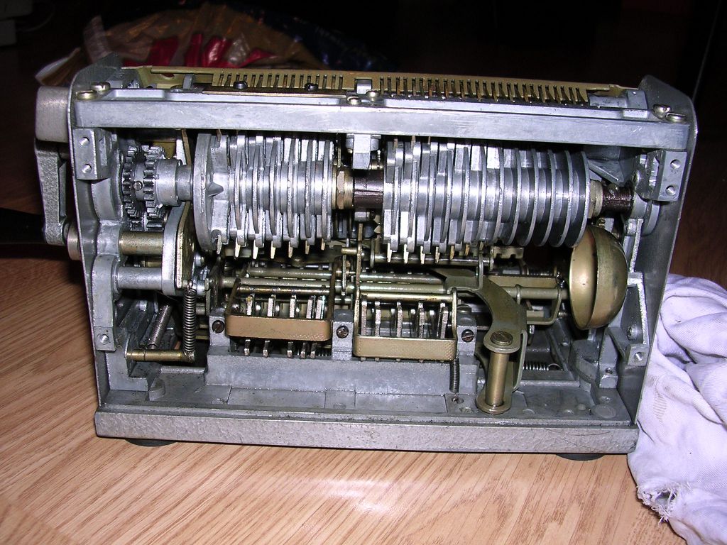 Revolution came in 1890, when W. Th. Odhner, Swedish engineer working in Russia, started to manufacture pinwheel arithmometers en masse. These arithmometers, invented 15 years earlier, were much cheaper and simpler, so they became available for offices or bureaus. "Odhner arithmometers" or "Brunsviga" arithmometers (clone) were manufactured in many factories to late 1970s. You can read more about Odhner arithmometers reading about Feliks arithmometer, as it's Odhner's clone.