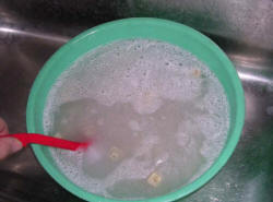 normal dishwashing liquid is enough) and stir them using a brush on longer