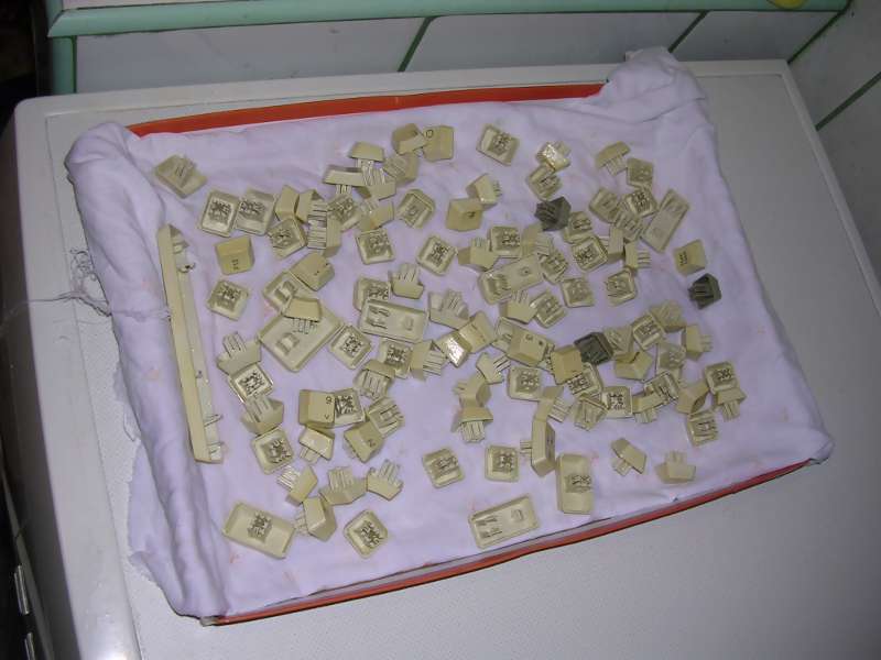 A method for cleaning keyboard's keycaps is similar as with other computer parts, but I just put them to bowl of