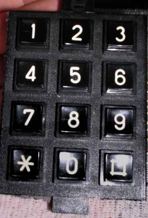 I used a typical numeric keypad from an old phone. It's a matrix keyboard, which means it's a grid of wires connected by switches. If we have a 12 keys, there will be only 7 wires coming out from the keyboard (3 columns, 4 rows). It's practical in a complex digital devices with keyboard scanning routines, but it's useless in this device. This keyboard must be a normal key set which shorts every key's wire to the common one (in our circuit: ground) - 12+1=13 wires.