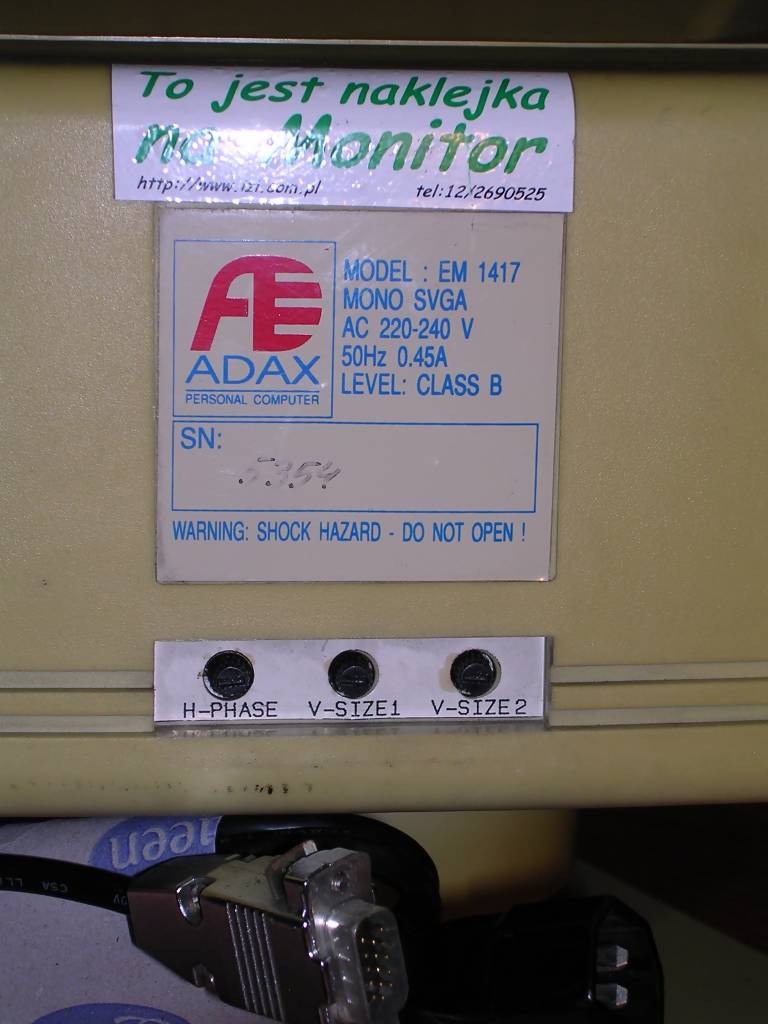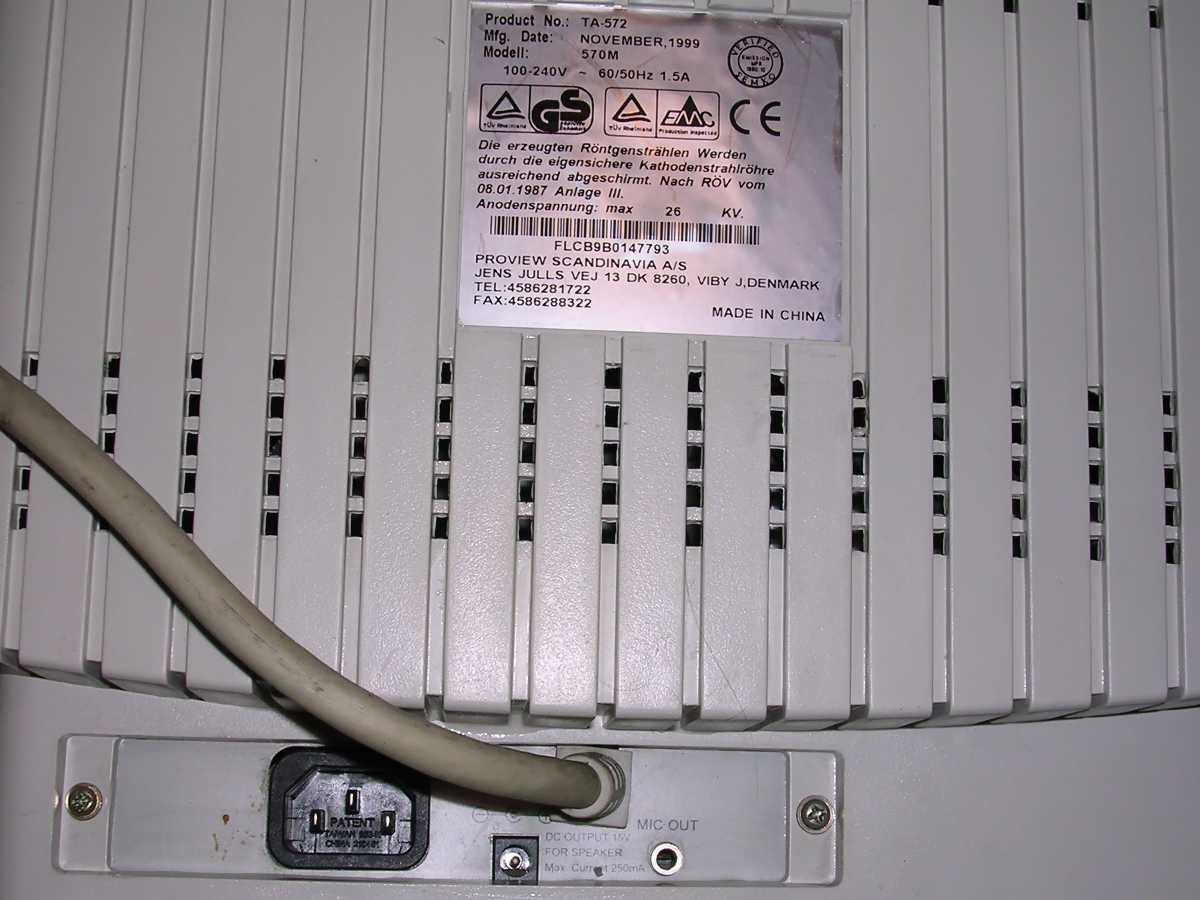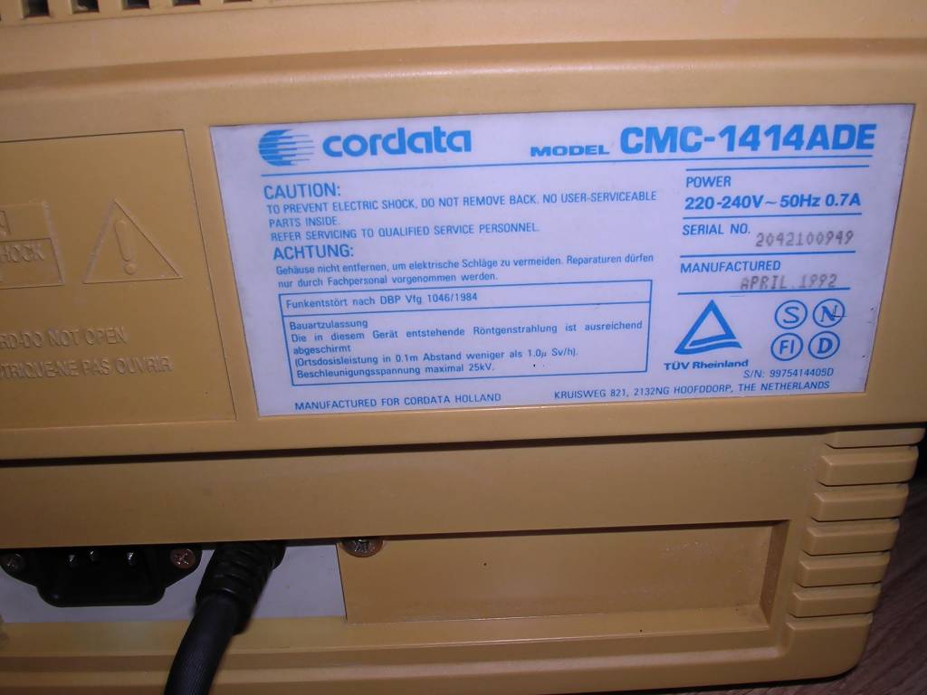 made by Daewoo and sold under different brands. This unit has been bought with 386 computer through German company and was operating since mid-1992 with special shield on it. Later it was used with Pentium computer, until it was replaced around 2003. I got it later, around 2005, and since then used in my "service shelf" to test PCs. It works without problems even today [2017]. ![]() |