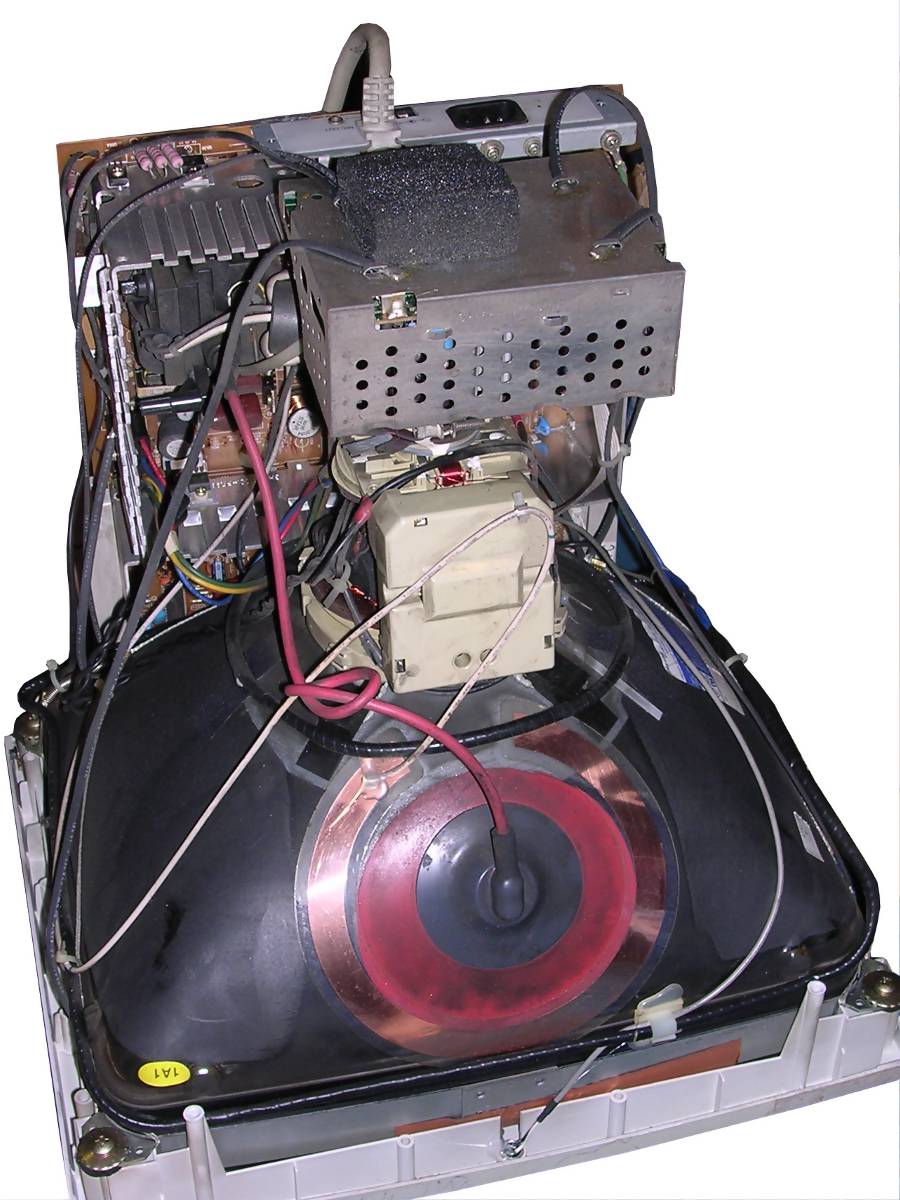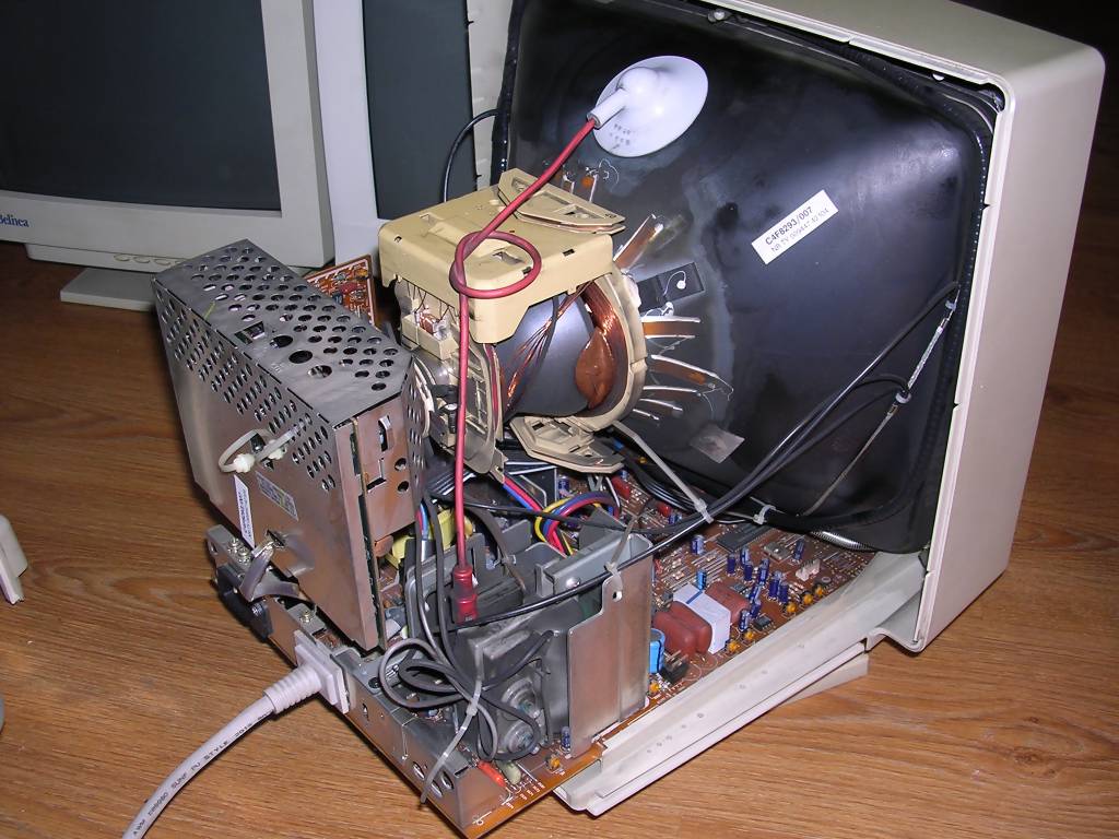 (probably partially in XP). I got my unit with disappearing colours problem, and built-in signal cable had to be replaced. Few years later capacitors near HV circuits caused slight distortion, which was fixed. It is still used. ![]() |