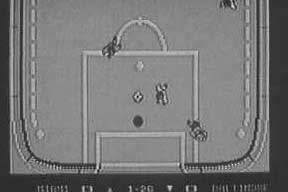 Players automatically dribble whenever they make contact with the ball. You make kickoffs, goal kicks, corner kicks, and throw-ins by pressing the joystick button. During the heat of battle, you can tackle and make four different shots; the straight and low volley, the lofting chip shot, the backward scissors kick, and the curving banana kick. Unfortunately, you can't his the ball with your head or execute many other kicks and traps described in the documentation.