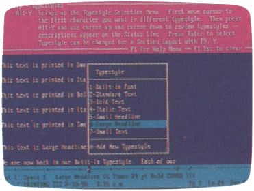 All of the different section layouts can be scrolled through and then used, edited, or copied. The program ties style sheets to the documents by filename extension so the same style sheet can be used with other documents. If, for example, you create a style sheet for a proposal in the file BILL.PRO, you can use the same style sheet when you write another proposal simply by using the same extension. Call your new proposal TOM.PRO, and you're in business. Now you can concentrate on the content of this winning proposal rather than on its format.