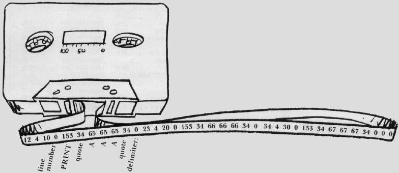 The Microsoft BASIC version of this short program would look like this in the computer's memory or on magnetic memory after a SAVE: