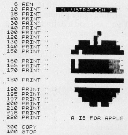 If you look closely, you will notice that the tiny squares that make up the picture, such as the top of the apple stem, are not exactly square. You can also see the individual wire tracks across the picture. However, for $99, this is quite acceptable. The person who buys a Timex/Sinclair computer is not likely to want to spend $1000 for a high-resolution dot matrix printer.