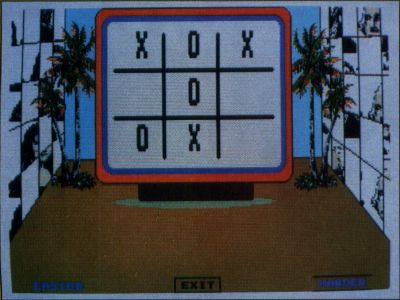 Doubleclick on CUPBOARD.PRG to begin (you must be in low resolution). You'll see the cupboard with a game sitting on each shelf. To play a game, just point to it and click the left mouse button. To leave the game cupboard, click in the EXIT box in the lower right-hand corner.