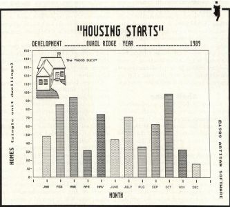 Artisan Software demonstrated Graph Maker ($59.95 List), a GEM-based color business graphing program. Graph Maker receives lists of numbers, summarizes the results and displays (or prints) bar charts, line graphs and pie charts. Graphs may be saved in DEGAS or Neochrome format for later editing. Desktop-publishing users should have fun with this one. Clip art may also be used in Graph Maker drawings.