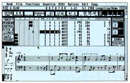 What are the differences between these two programs? First, Notator is a subset of Creator. Typically MIDI developers have sold music notation and sequencing programs separately, forcing you to leave one program and boot up a new environment in order to notate. However, C-Lab's software is different. Notation functions are nested very nicely into Creator's editing section, thus creating a new program, Notator. Here, I'll describe the most notable features offered in both programs and then move on to the additional features offered by Notator.