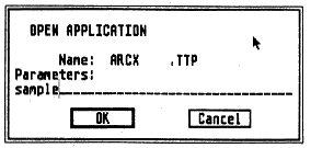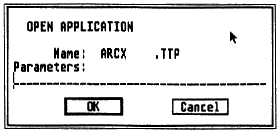 2. Now you'll extract the compressed files from the ARC file you just copied. Insert your Un-ARC disk into Drive A and press the Escape key on your ST to see the disk directory. Double-click on ARCX.TTP. The following dialog box will appear: