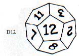 D12 is a dodecahedron, with twelve sides numbered 1 to 12.
