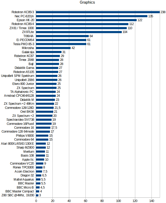2020-03-14: Added Nec PC-8201A portable computer. Computationally average. In graphics, LCD scrolling takes lots of time.