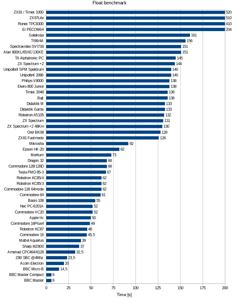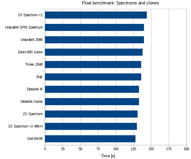 - BEMZ Bajt Soviet computer with its all TTL logic has results very close to Timex 2048.