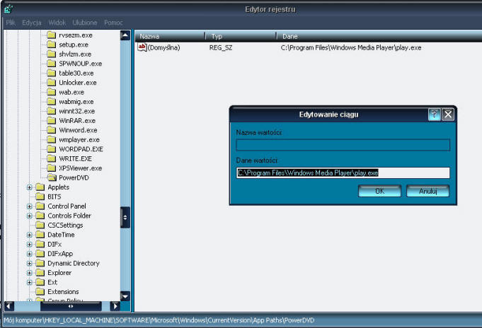 there make a new Key called PowerDVD and change default string value here to