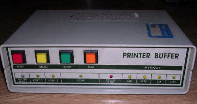 This is for general modem connectivity, not for printers but it fell to the category as it's a buffer. Although this device can buffer serial port's data, it's primary role is to perform logging of critical data from networks and keep it secured in battery-backed (or later Flash) memory for diagnostic and backup purposes. Typical usage: Imagine that telephone patch's computer fails and information about connections are not written to it. This buffer gives additional chance of recovery. Data is written in character or binary strings, stored in FIFO way. This device is still manufactured (only with LAN interface and larger memory) and used in wide range of applications.