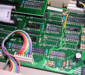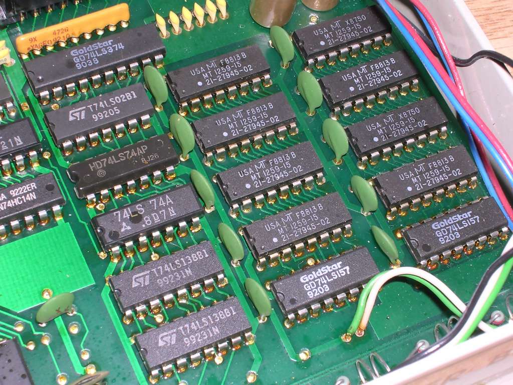 Inside, there is a complete Z80 system with 16kB of ROM (dump). Like a Spectrum. Memory is aligned in 64K banks. More, although the quality of PCB is quite normal as for Polish technology, the mounting technique is below all standards. Lots of alloy, rosin left around pins and in one case broken pin soldered "until it sticks" reveals that it was mounted totally by hand. Supplying power, give it a good 200mA 9V supply.