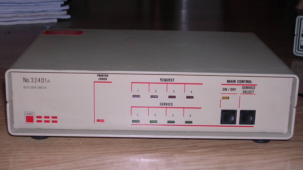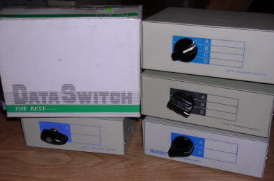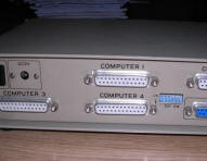 These switches were among the cheapest ones, being the most simple parallel port switches. It consists of casing, connectors, rotary switch and lots of wiring inside. Nothing more. This simplicity gave them flexibility, so it was possible to use it not only for printers, only proper cables were needed. Even 5-position switches have been made. Unfortunately, being mechanical constructions with moving parts, they failed quickly.