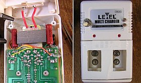 以前、「一言板」で皆さまから「乾電池を充電すると爆発する!」って脅かされて(x_x;)から、“んなら壊れてもいいモノを”と安物の充電器を買って来て、アルカリ乾電池を充電していました。(左写真:\980税込)