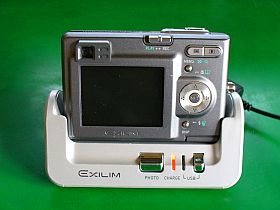 分解したままで、手持ちのカメラEX-Z3(専用バッテリ入り)とACアダプタを接続してみたら、そのまま充電を開始してしまいました。