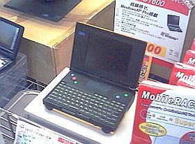 古本市の帰りに、日本橋に寄った。と、さる中古大手の店前に、カバーが黄色(?金色!)のPC110が飾られているではないか!(値段は、\1,9800、いや!ちゃんと\19,800+税と書いてあった、と思う)
