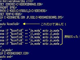 マルチ・コンフィグ用autoexec.bat内でのジャンプ先振り分け行 %config% の事。