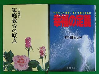 『家庭教育の原点 上廣 榮治著 倫友出版(株) 昭和59年8月 4刷 \880』 & 『幸福の定義 勝田 修弘著 東急エージェンシー出版部 1996年9月 3刷 \1,300税込み』 (購入各\105税込み)