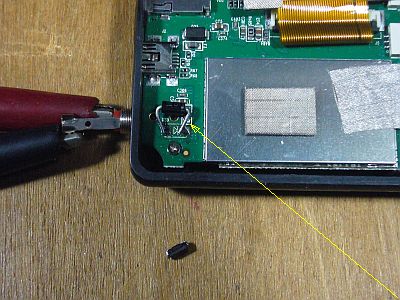 無理に取り出すのが難しかったので、(使う予定の無い)TV用アンテナ・コネクタの半田付けを外して、主基板を取り外した。(図4<クリック>)