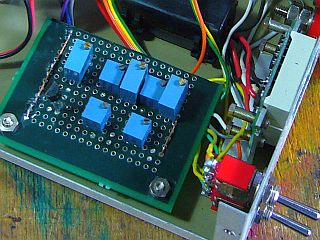 それには、オペアンプのフィードバック出力を分割入力する可変抵抗VR2個を使い、適切に切換えればよい。...それで、決めたのが、左写真<クリック>の回路(赤印が切替部)。