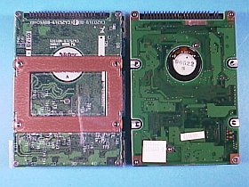 そのジャンクに付いていた標準HDD(左写真の左側)には、銅のショート・リング(漏洩磁力線遮蔽用-タブレットへの影響軽減が目的?)が貼ってあったので、それを外して不調HDDに付け替えてみました。が、これも効き目無し!