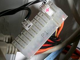 CPUと一緒に、電源端子用に2ピンのオス端子を買って来て、SX270側から出したリード線に、半田付けして接続。_左写真_