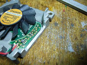 今回は、大きさが同じ別の冷却ファンを加工して取り付け、調べてみました。