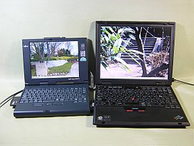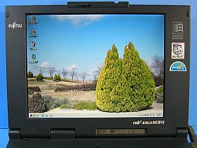 今では、Win98で正常にSVGA(800x600)、6.5万色の表示が出来ています。ただ、画面が大変暗いので、本体の青黒さと相俟って、見栄えのしないマシンになっています。
