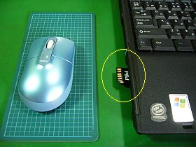 USBポートは、メイン機TPR31の場合、1口は後部やや左寄りにあり、ここに無線マウス用受信機を挿しますが、マウス本体を右側に置くと、電波到達範囲がやや狭過ぎるのです。