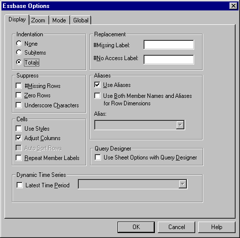 Essbase Options dialog box.