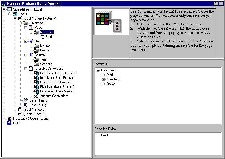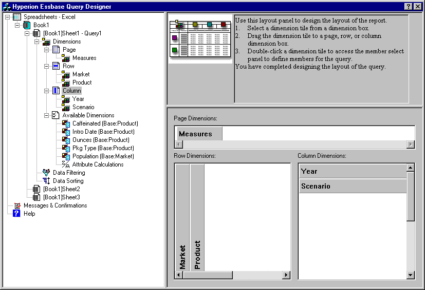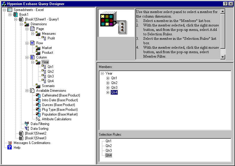 Hyperion Essbase Query Designer displays