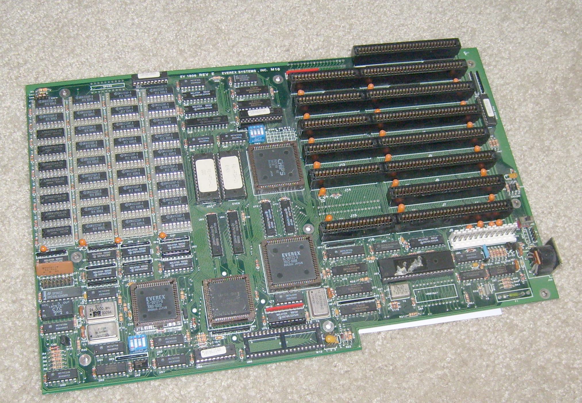 Motherboard chipset | 2 chips by EVEREX, and 1 chip by Chips & Technologies |