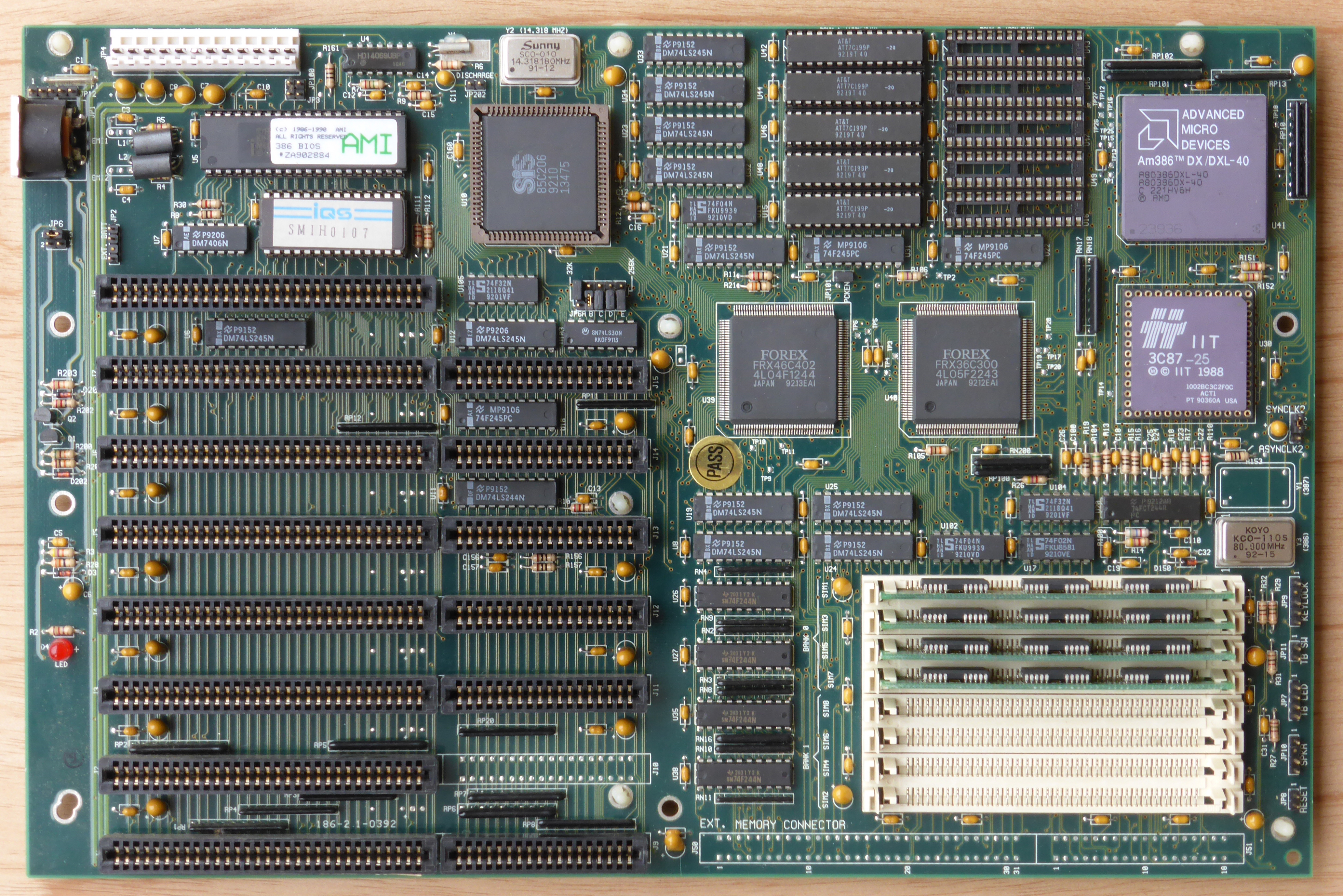 Comment | Looking at the 'Total Hardware 99' database, this board is very close to the following boards: * Make: FOREX COMPUTER COMPANY Model: 386 CACHE SYSTEM BOARD * Make: FREE COMPUTER TECHNOLOGY INC. Model: CACHE 386 ISA * Make: INFORMTECH INTERNATIONAL INC. Model: IT386SM-P * Make: SPRING CIRCLE COMPUTER INC. Model: MDX340C/FOREX386 This maybe a Forex designed board, licenced to others |