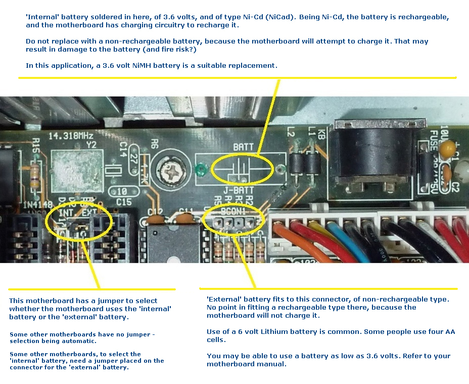 Motherboards in 286/386/486 based AT-class desktop computers - 'CMOS' batteries