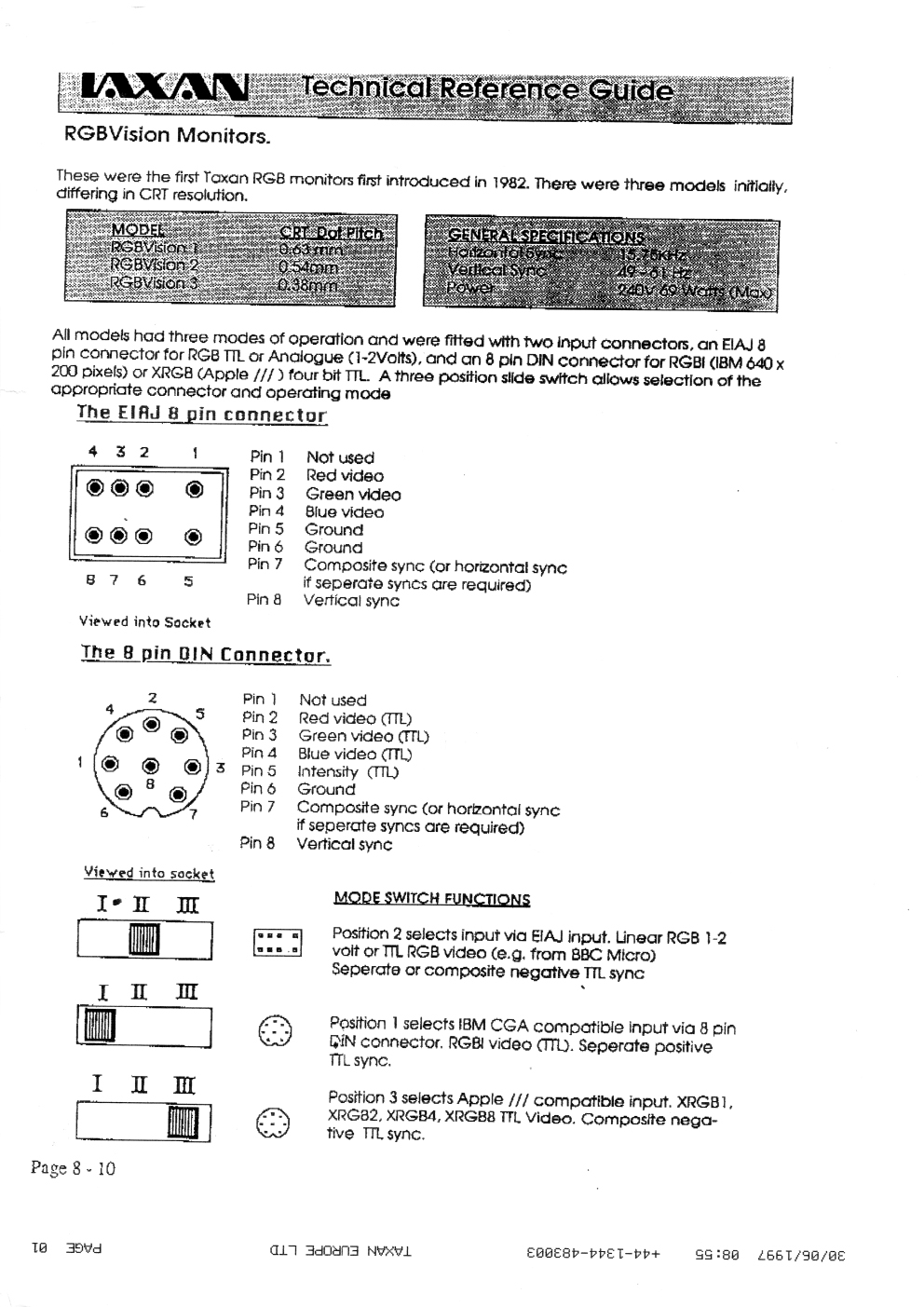 EGA Wonder 800+ Operation Manual | (EGA video card for PC and XT and AT) | (source: aitotat at the VCFF) |
